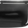 One-piece toilet made of pressure-cast fireclay. Less seat.